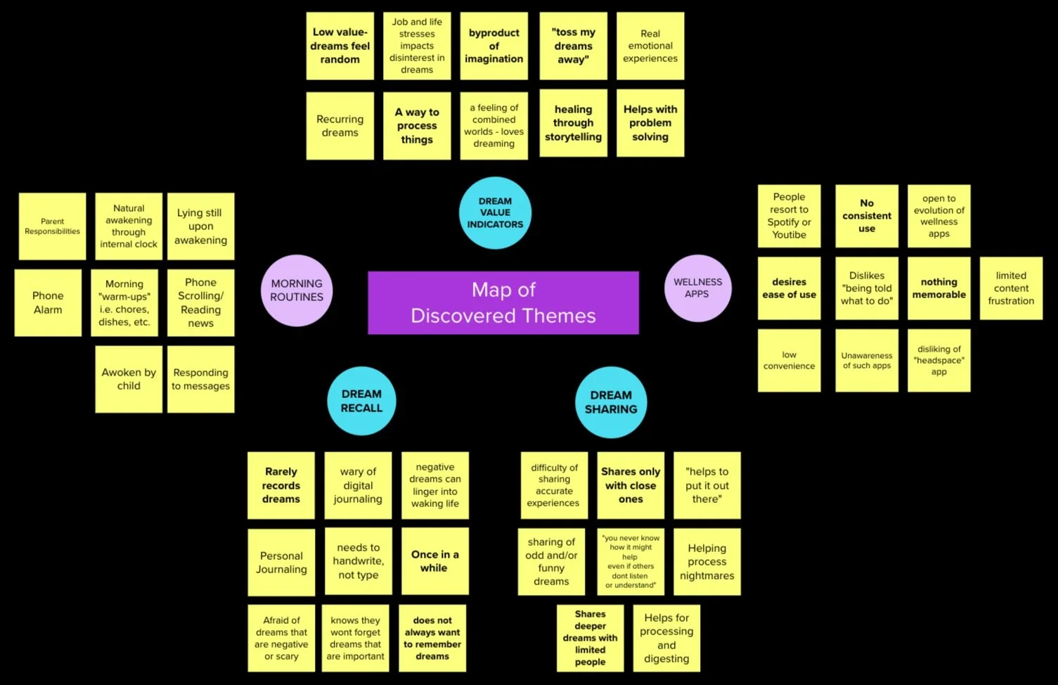With surveys and interview data, it was possible to notice patterns in user’s dream life experiences.